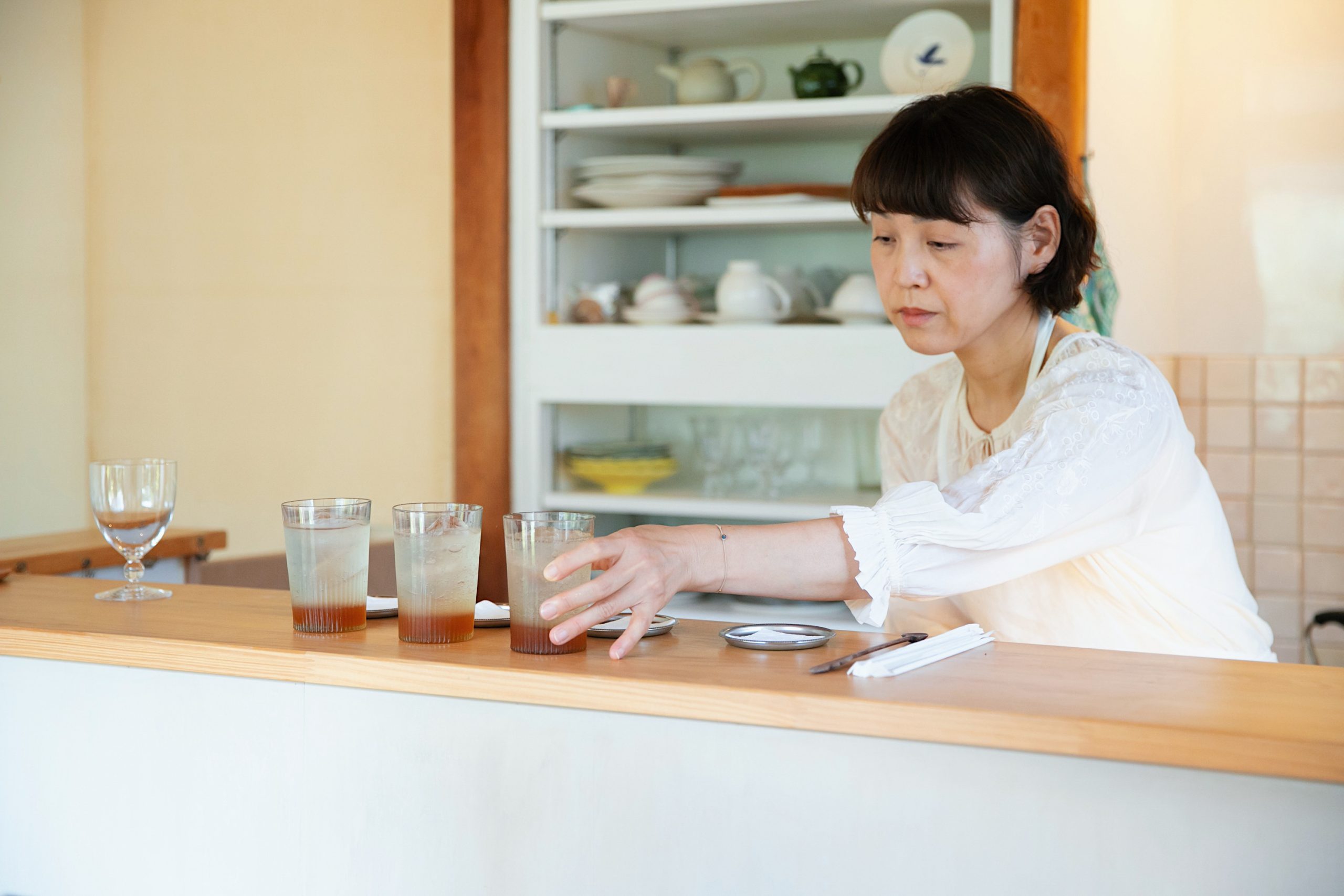 健⼀ : 薫は次にやりたいことが⾃分の中から湧いてくる。茶菓⼩のかたちで⾔うと、物販もやりたいと思っているんですよ。薫が選んでくるものは⾯⽩いし、それを⾒てもらったり売ったりする空間が作れたら、ということを思いついたりする。5年先の将来に向けて、そういうビジョンがあります。